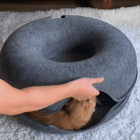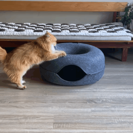 The thick felt material provides warmth and absorbs sound to reduce noise. The cave provides the perfect spot for your cat to snuggle up and catch some Z's, especially for pets that startle easily.
