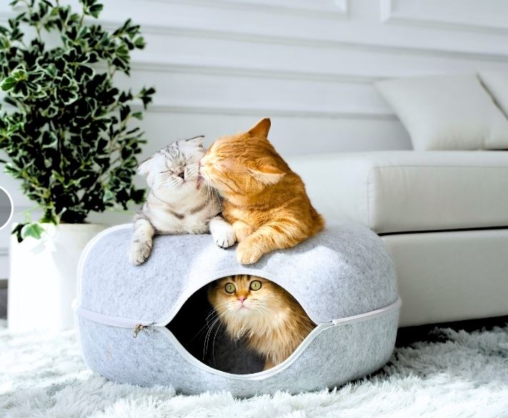 The Peekaboo Cat Cave can save money and space in the house by providing multiple cats with a shared, designated area for playing and relaxation, rather than each cat needing their own separate hiding place or bed.