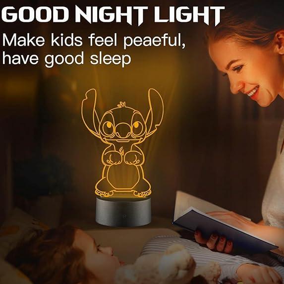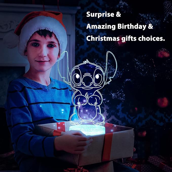 This is a big surprise. You can see Stitch 3D stereo imaging in the dark, but this is actually a two-dimensional illusion. It is made of flat acrylic glass and used 2D laser Engrave the image on the surface. Can create Stitch 3D stereo texture effect, showing colorful lighting effects, so as to provide a perfect visual experience.