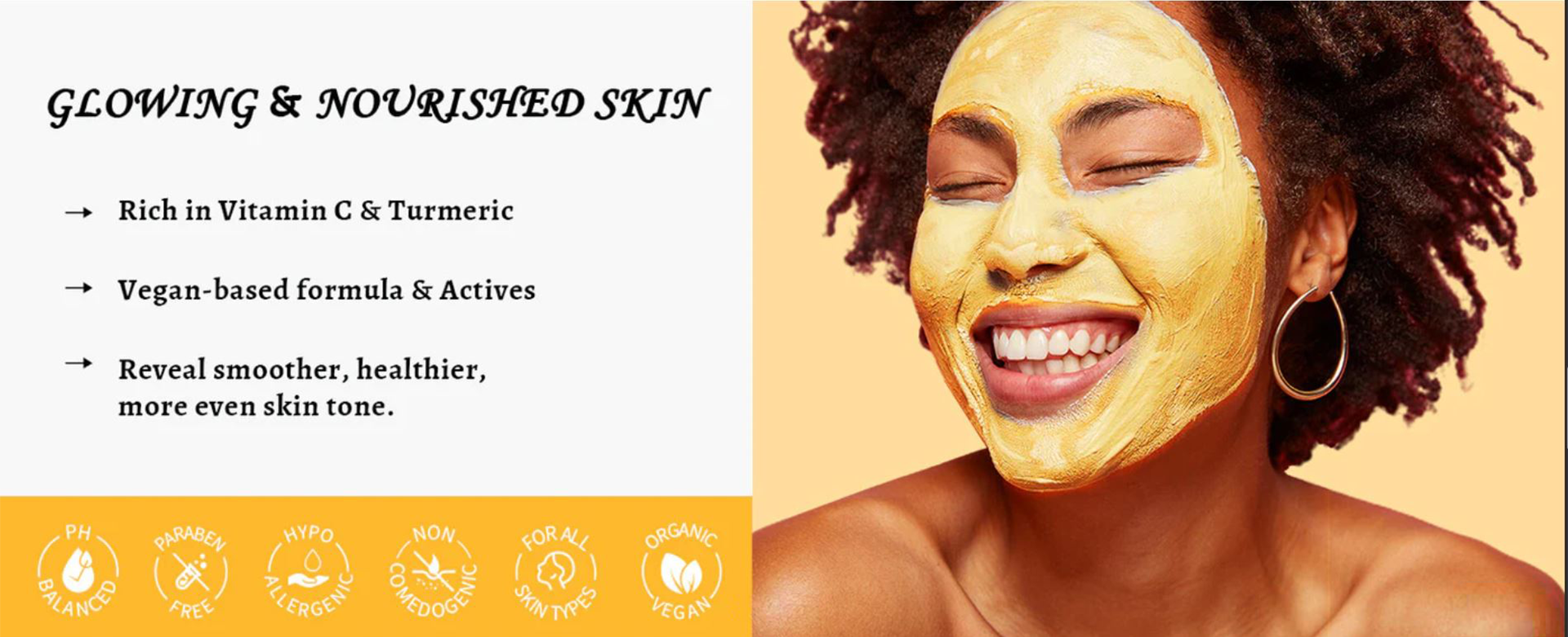 Turmeric Clay Mask rich in the stable form of Vitamin C and E, and helps revitalize skin, inhibiting the formation of hyperpigmentation to naturally lighten stubborn dark spots and blemishes for uneven skin tone.